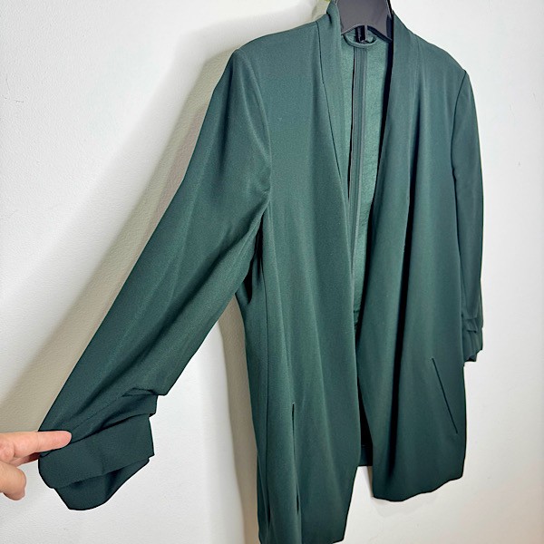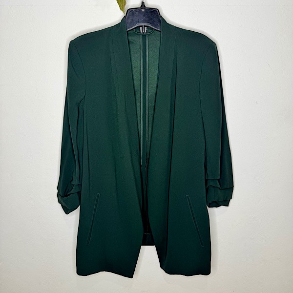 Blazer is in excellent used condition with no rips, stains or pilling. Light creasing of fabric in underarms.