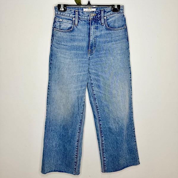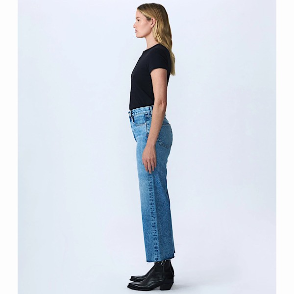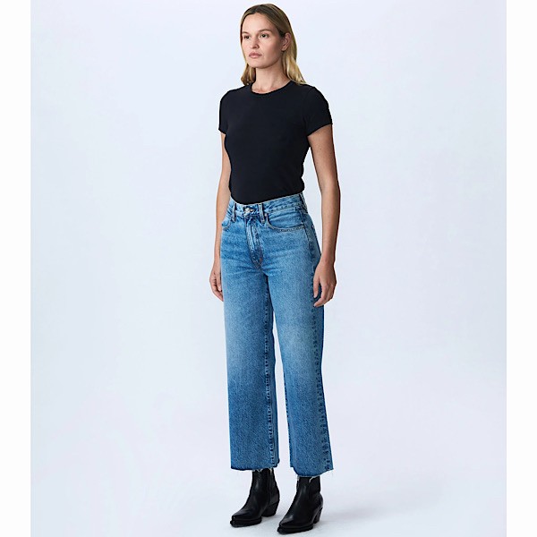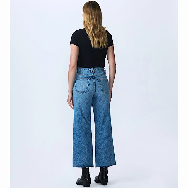 Grace is a SLVRLAKE signature style, offered in a cropped length designed to elongate the leg. Featuring a high-rise waist and wide-leg silhouette, it fits close through the waist and hip before flowing through the leg, finished with a raw hem.