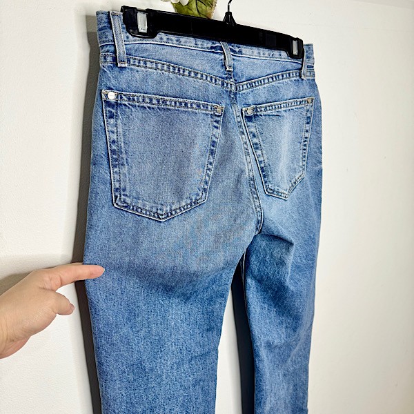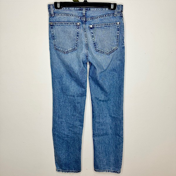 Crafted in classic blue denim, they feature a soft vintage fade, mid-rise waist, and a straight-leg silhouette that flatters while keeping the look relaxed and easy. Traditional five-pocket styling and subtle whiskering add to their authentic, worn-in character.