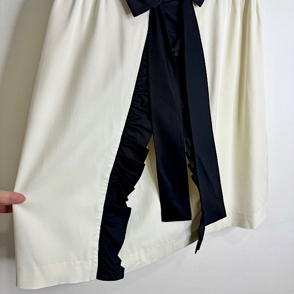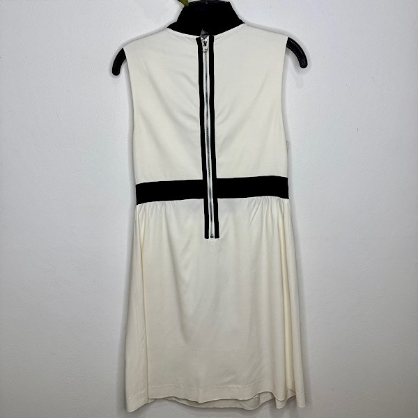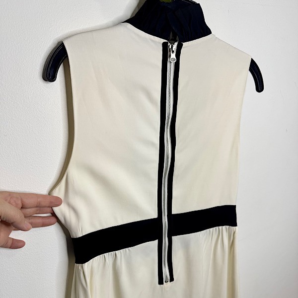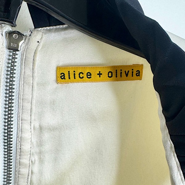 A striking Alice + Olivia dress featuring a dramatic plunge neckline and a chic black-and-white palette. Designed with a tailored bodice, sleeveless silhouette, and a statement contrast bow detail that cinches the waist for a flattering fit. Exposed back zip closure.