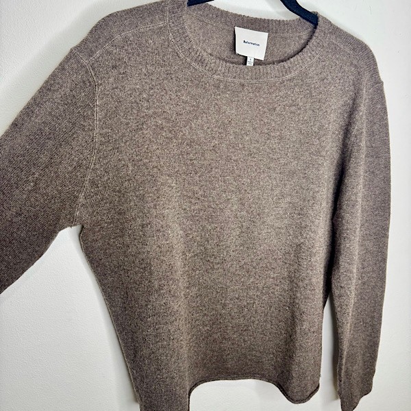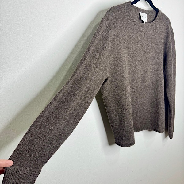 This sustainable sweater is relaxed fitting throughout and has ribbing at the cuff and neck with a rolled hem. It's made of super soft and stretchy recycled cashmere to keep you warm.
