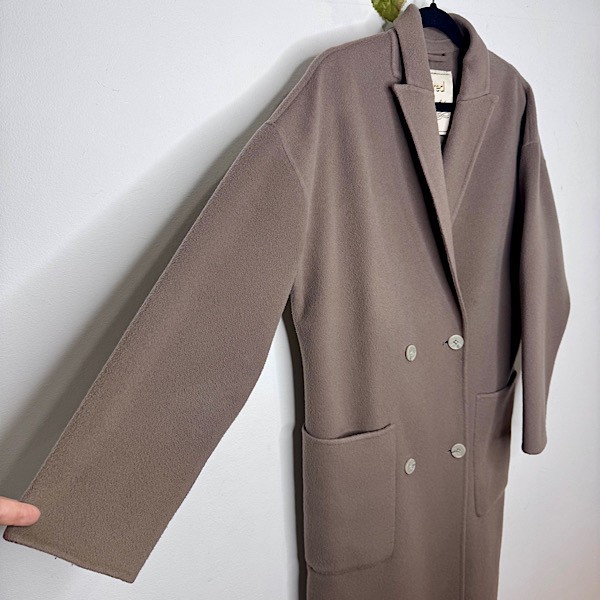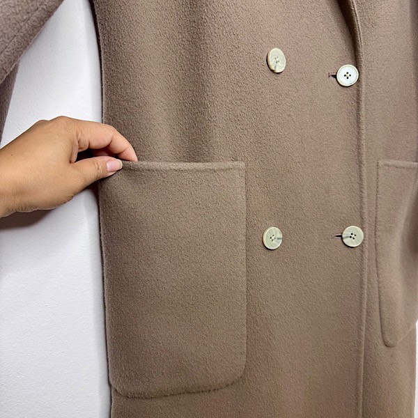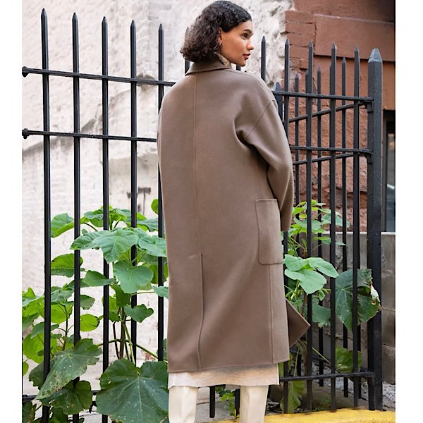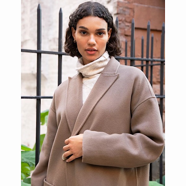 This is a relaxed, double-breasted coat with light shoulder padding, dolman sleeves and lapels that can be closed for extra warmth. It's tailored in sustainable luxury fabric made with recycled camel hair and virgin wool, selected for their exceptional warmth, softness and natural resistance to wind and water. Constructed to deliver warmth to -20°C / -4°F.