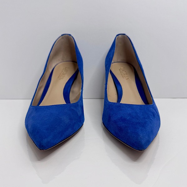 Crafted with supple full-grain leather, the pointy-toe Lanette pump features a padded insole for all-day comfort. A brass-finished “LRL” logo at the back provides a signature Lauren Ralph Lauren finish.