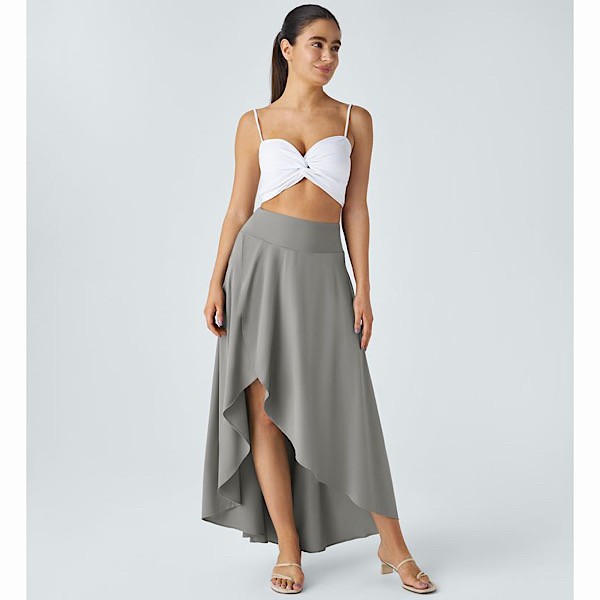 Crafted from lightweight quick-dry fabric that is breathable with four way stretch. Features built in shorts with a flat waistband, high waisted with a maxi length silhouette.