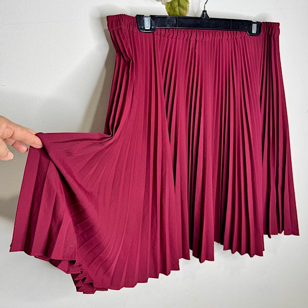 This vibrant pleated skirt brings effortless movement and a pop of color to any outfit. Designed with a soft, elastic waistband for a comfortable fit, it features finely pressed pleats that create a graceful, flowy silhouette.
